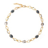 This elegant 18k gold-plated stainless steel necklace perfectly blends modern and classic design. Crafted with a delicate gold-tone chain, it features alternating oval-shaped smoky crystals. The delicate smoky crystal link necklace is secured with a lobster clasp for easy wear and adjustment.